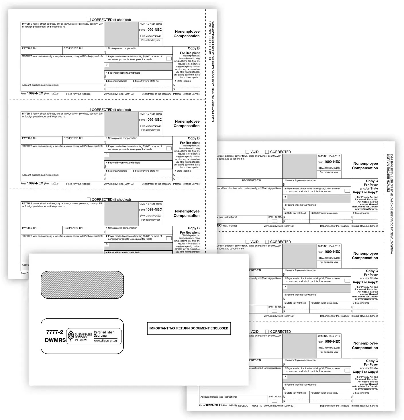 1099-NEC Laser Z Tax Forms 3-Part 3-Up Format (50 Employees)