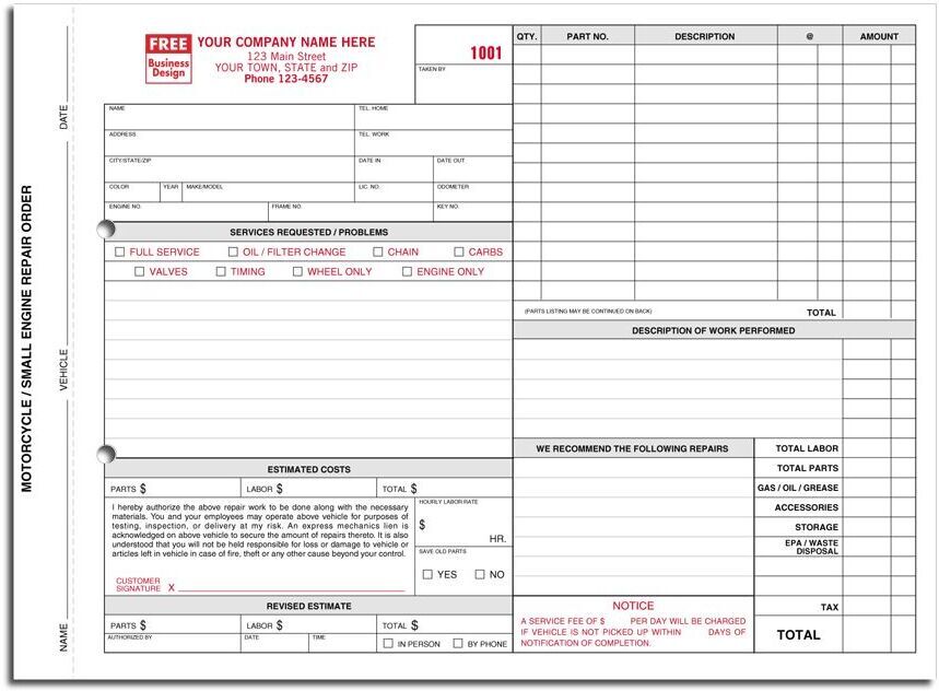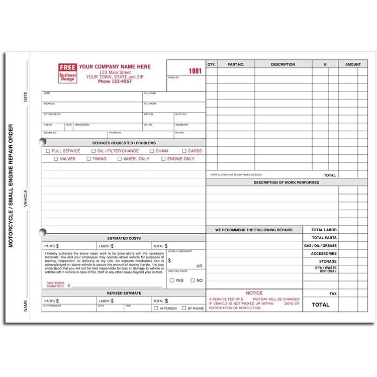 Carbon Copy Motorcycle Engine Repair Orders (6510-3)