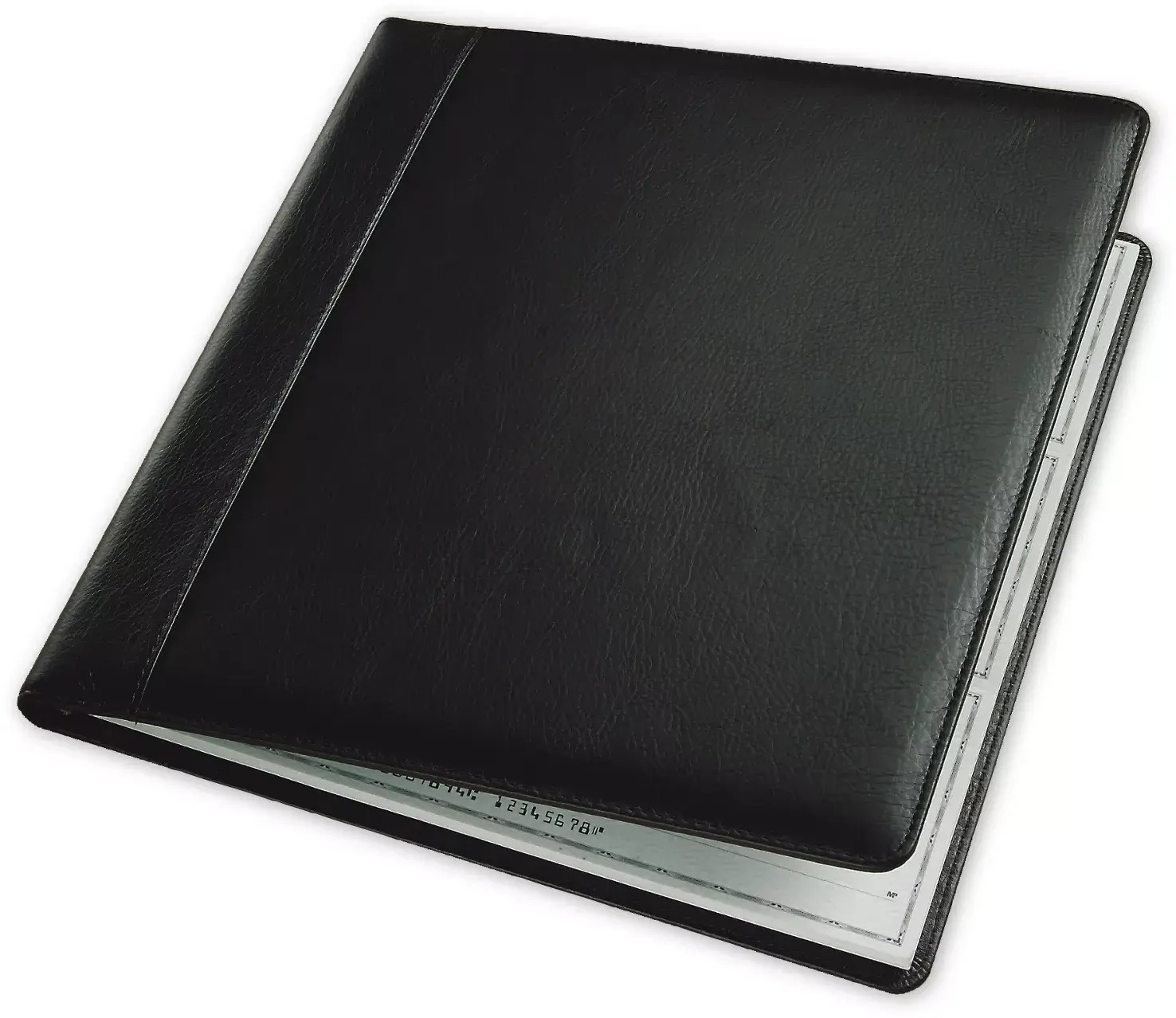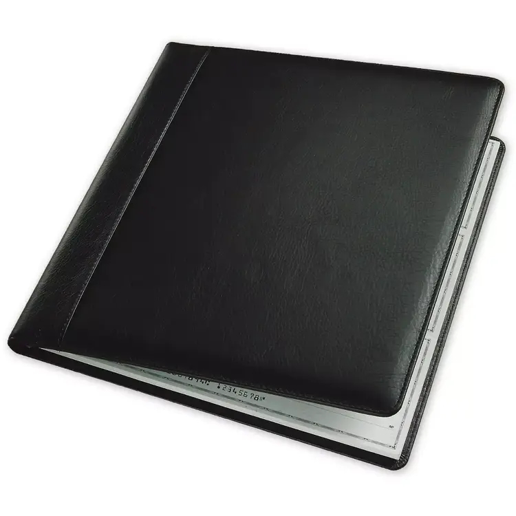 Crafted from luxurious, durable bonded leather, this 7-ring binder is expertly designed to secure and organize your 3-on-a-page business checks. Its sturdy construction and classic design make it an indispensable tool for managing payments, while the smooth finish projects an image of sophistication and attention to detail.