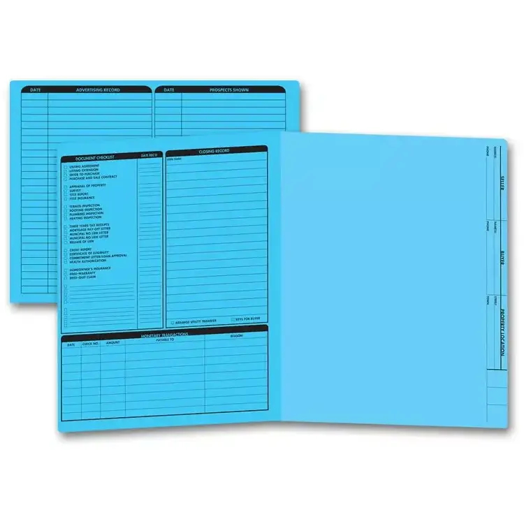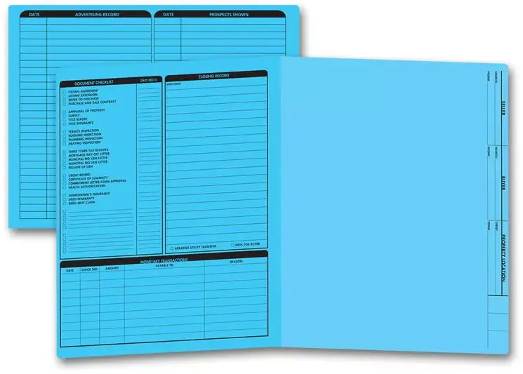 Blue Letter Size Real Estate Listing Folders, Left Closing List (285B)