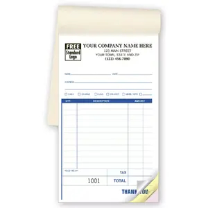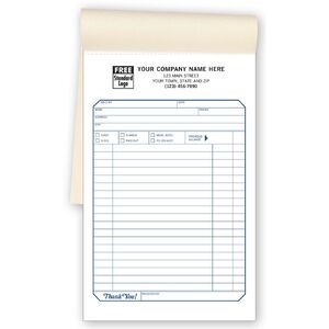 Widely popular, our custom sales books come with plenty of room to list all of your order's details. We offer custom sales books so that your order forms stay bound to the book, keeping all copies in one place. The sales books come in multipart carbonless format, ranging from 1 to 4 copies. For a truly custom look, you may design your own.