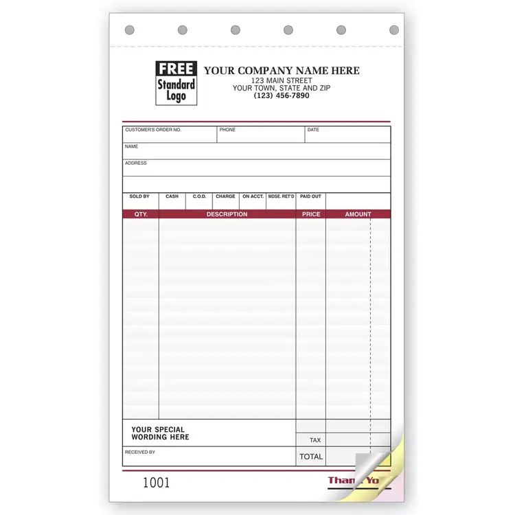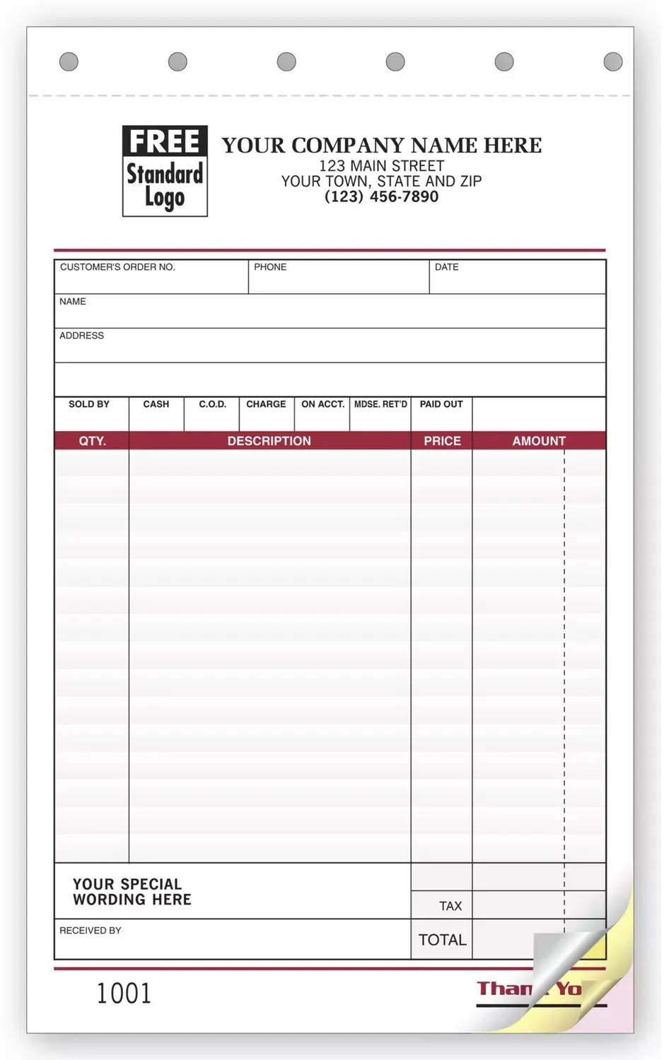 Expertly printed on NCR paper, our receipts combine pre-printed efficiency with custom branding - allowing you to showcase your company logo, name, and details right at the top. Make a lasting impression while streamlining your sales documentation with ease.