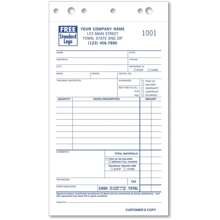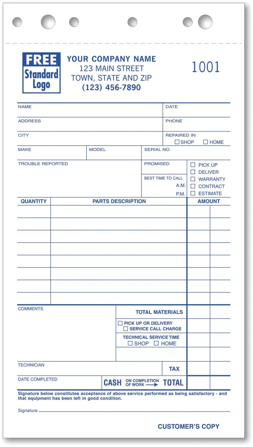 Enhance your business image with personalized service order forms. These service order forms include ample room for details.