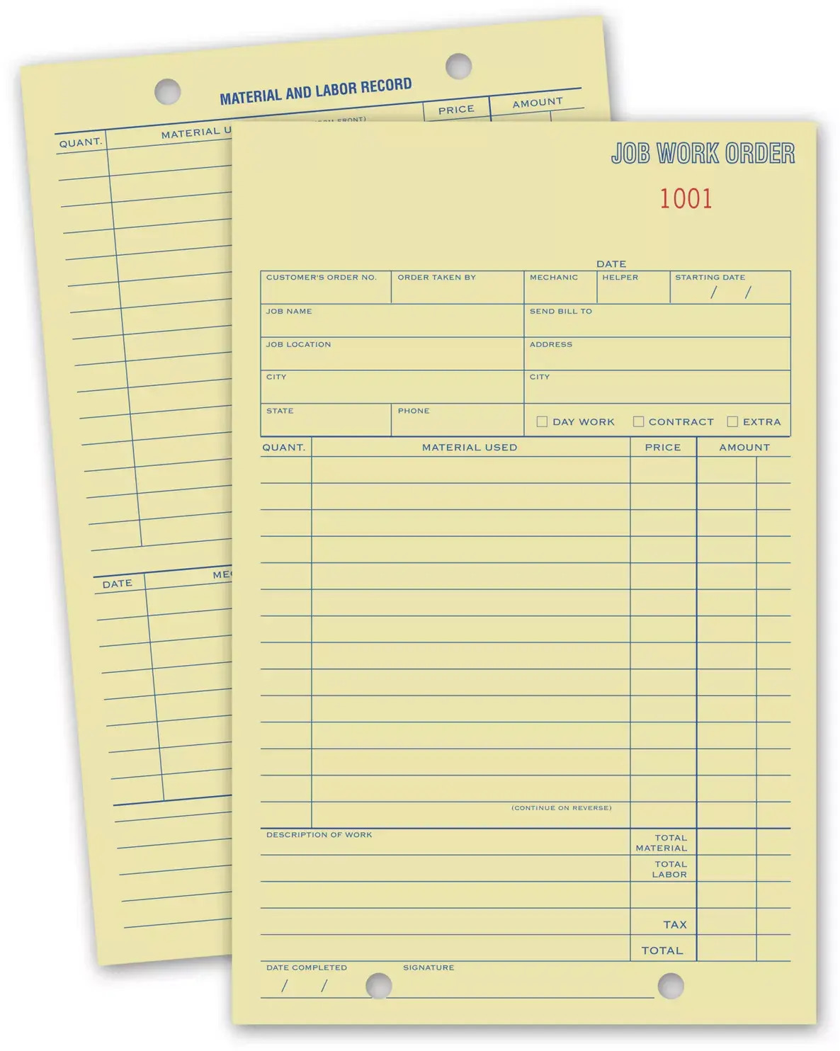 "Job-site tough" pads are ready to go to work with you! Room to list project details and itemize charges. These job work order pads save you time when invoicing and serve as a handy reference for future jobs.