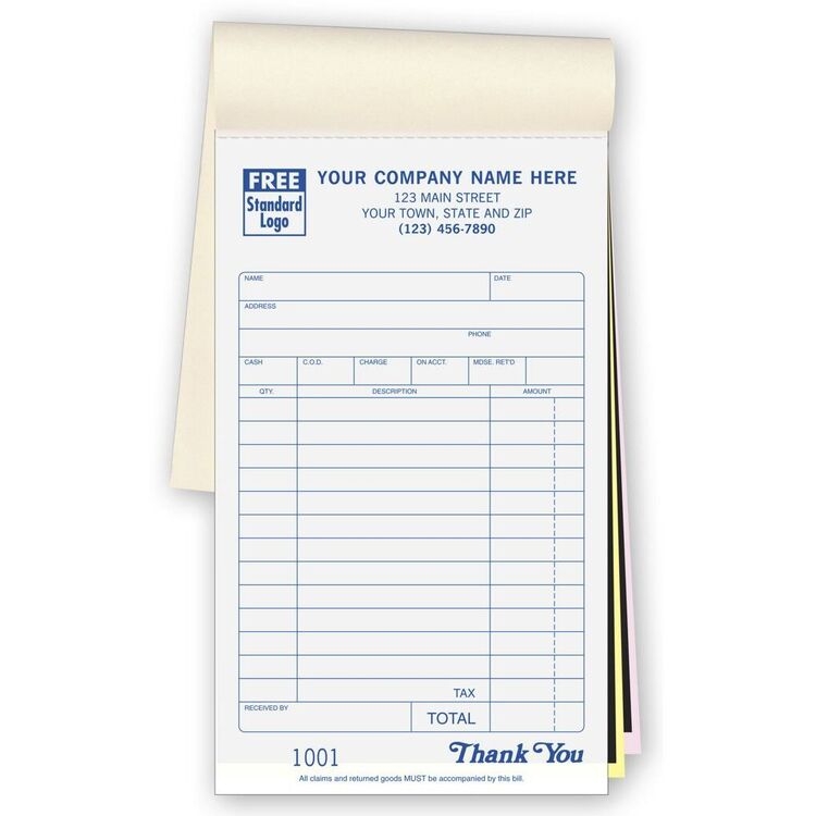 | Min. Quantity | 500 Sales Slips (10 Books) | ||||||
