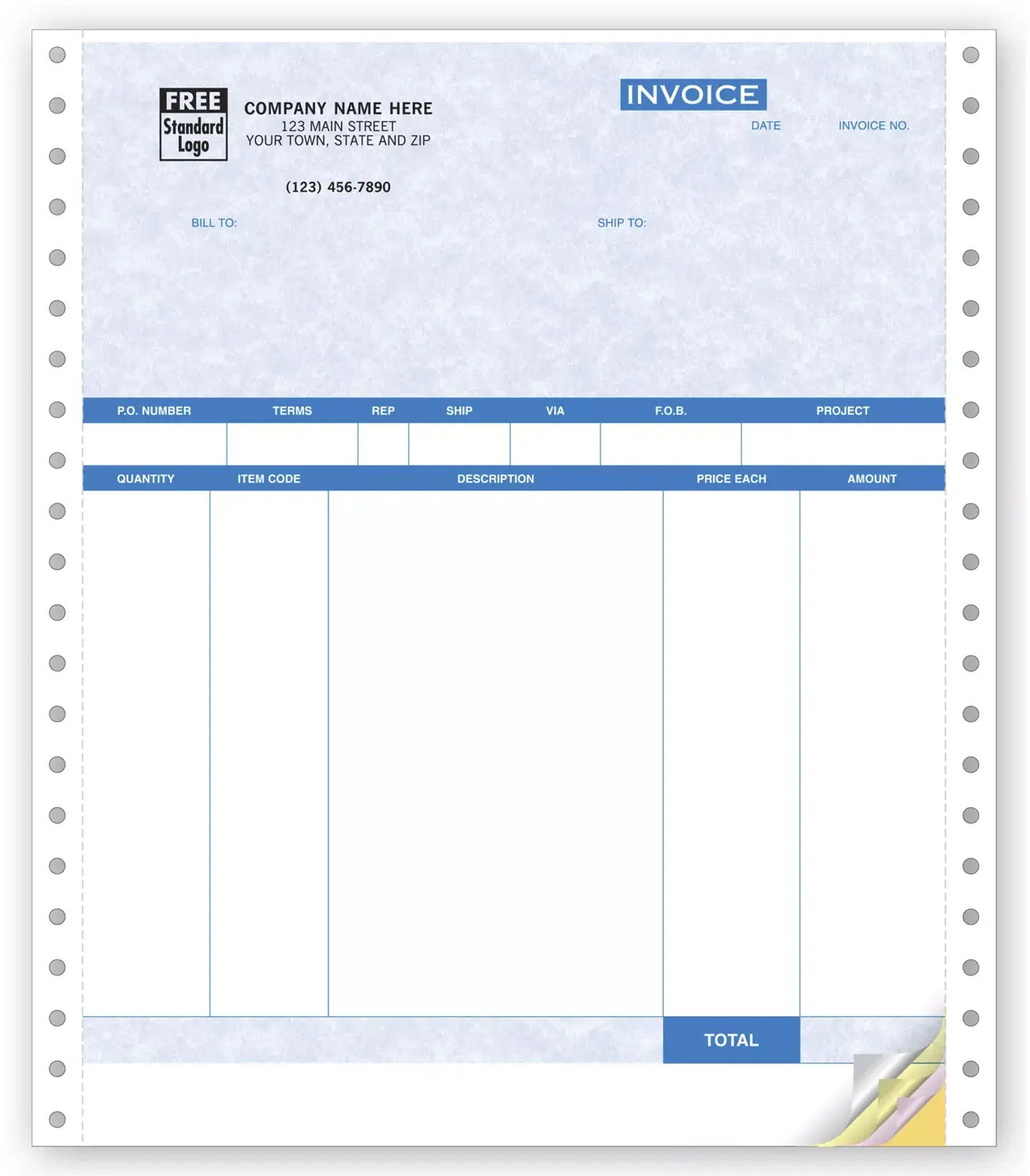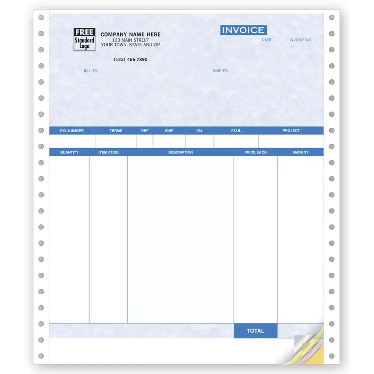 Great for businesses that ships products! Custom imprinted with your information, this continuous invoice features a packing list on the 4th part.