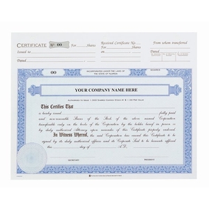 We offer personalized share certificates for your company. Our custom company share certificates are printed on secure paper and available in different styles and colors.
