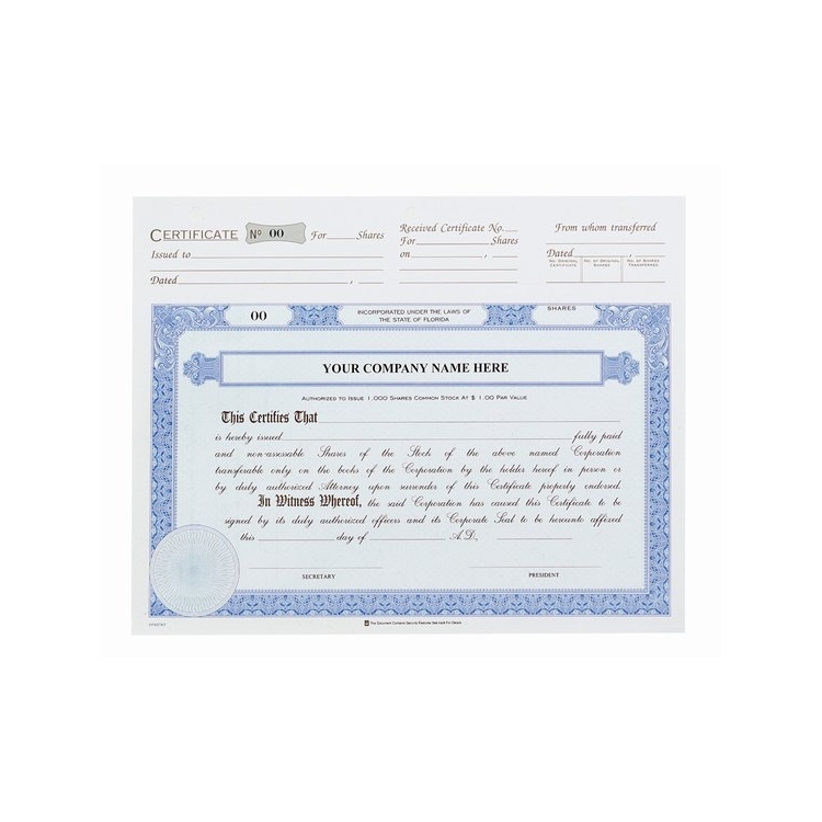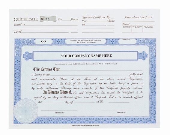 Share Certificates - Top Stub