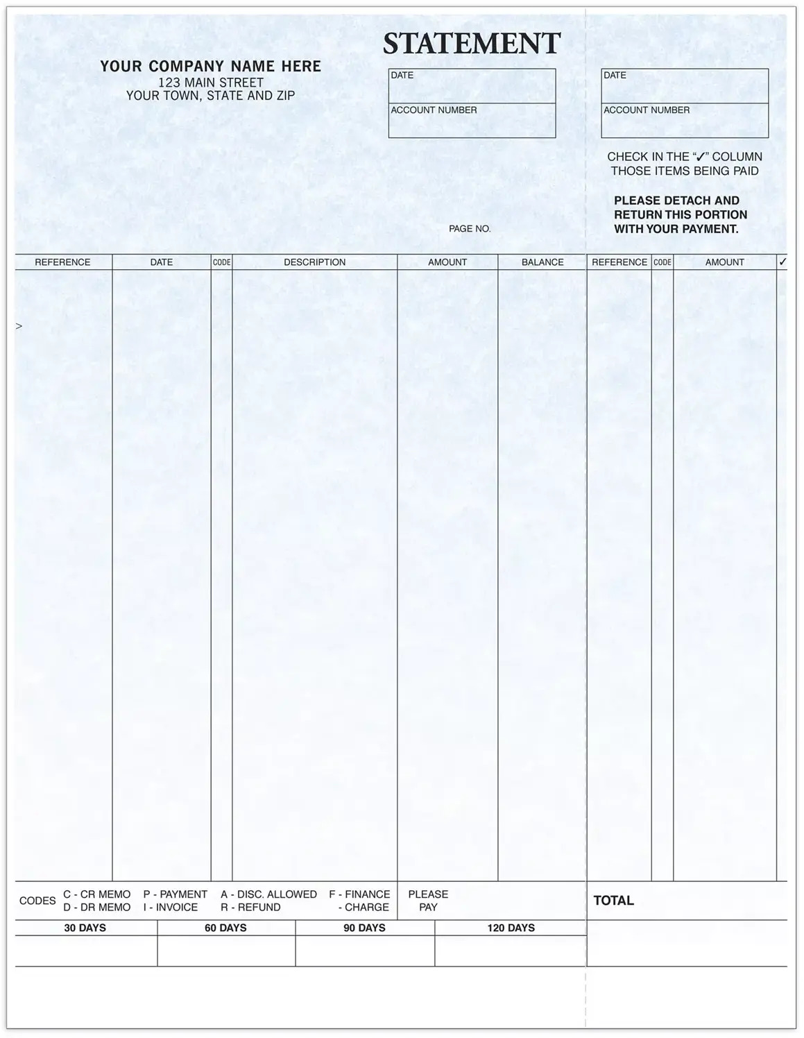 Present a professional image! These personalized Laser Statements help enhance your business, with a perforated top return portion for easy customer payment. Free personalization includes: your business imprint plus choice of typeface & standard business logo.