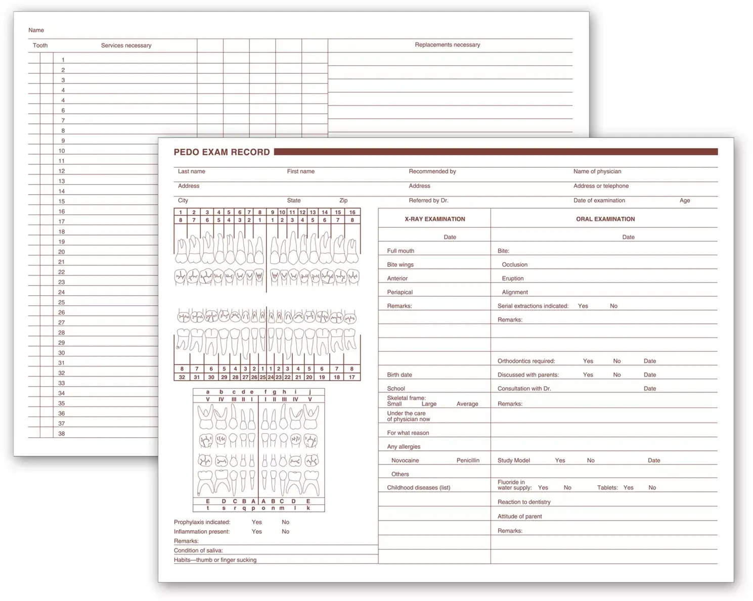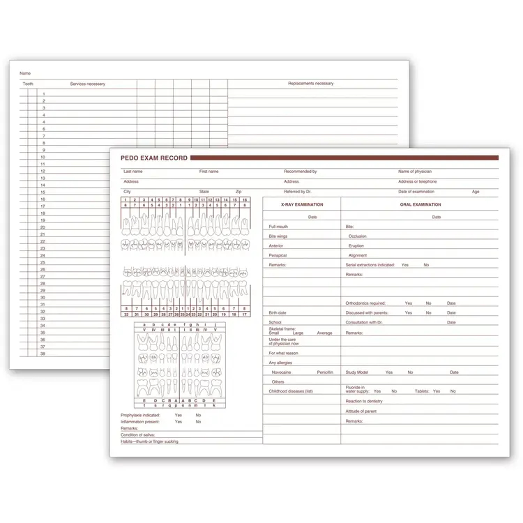 Pediatric Dental Exam Records, Two-Sided (20092)