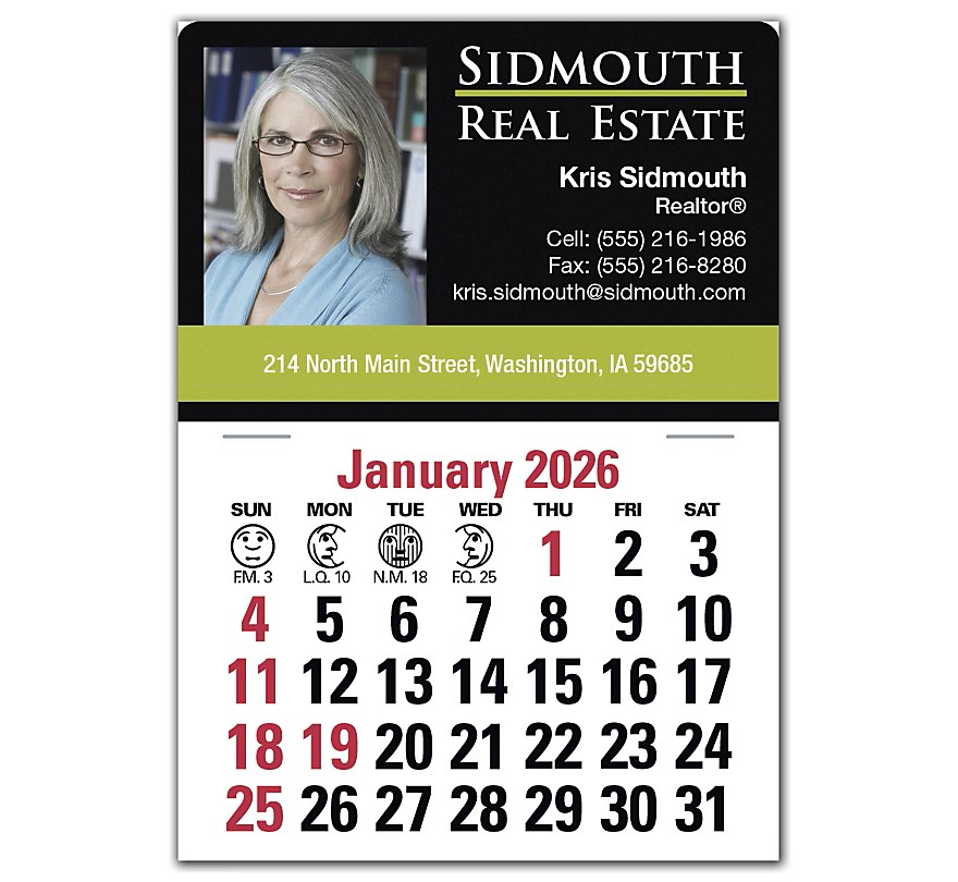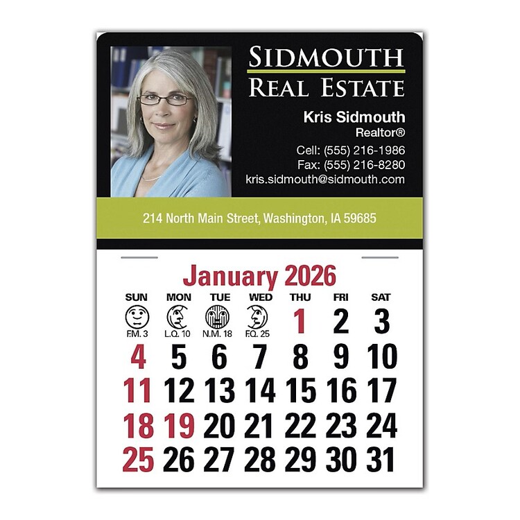 Get your name to stick with customers! An affordable gift they'll use every day. These semi-permanent calendars with picture stick just about anywhere.