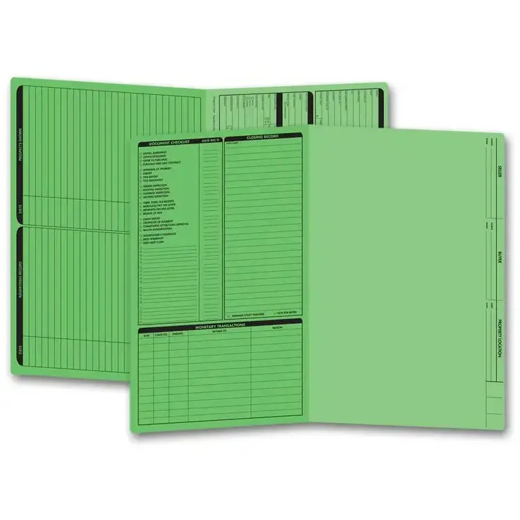 Green Letter Size Real Estate Folders, Right Closing List (275G)