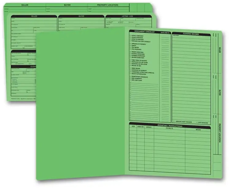 Green Legal Size Real Estate Listing Folders, Right Closing List (276G)