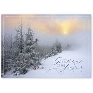 Winter theme holiday cards offer beautiful scenes of snow and the outdoors. These greeting cards come in a variety of choices and always include matching envelopes.
