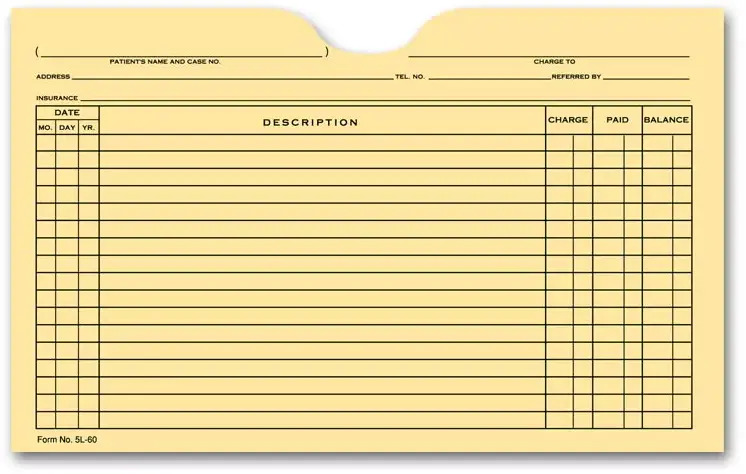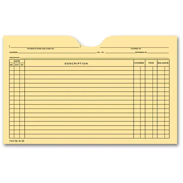 Printed Patient Card File Pockets, Single Column, Buff (5L60)