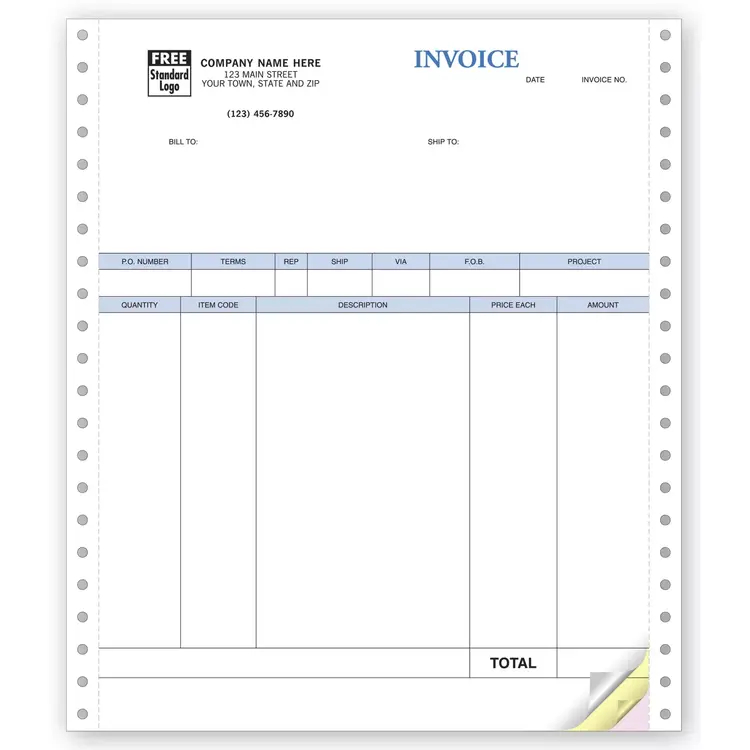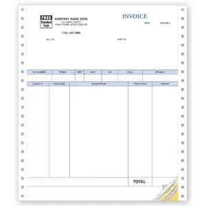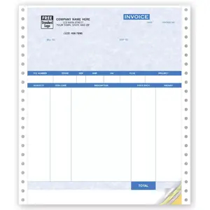Specially designed for products, these continuous invoices are compatible with QuickBooks® and are personalized with your business information at no extra cost.
