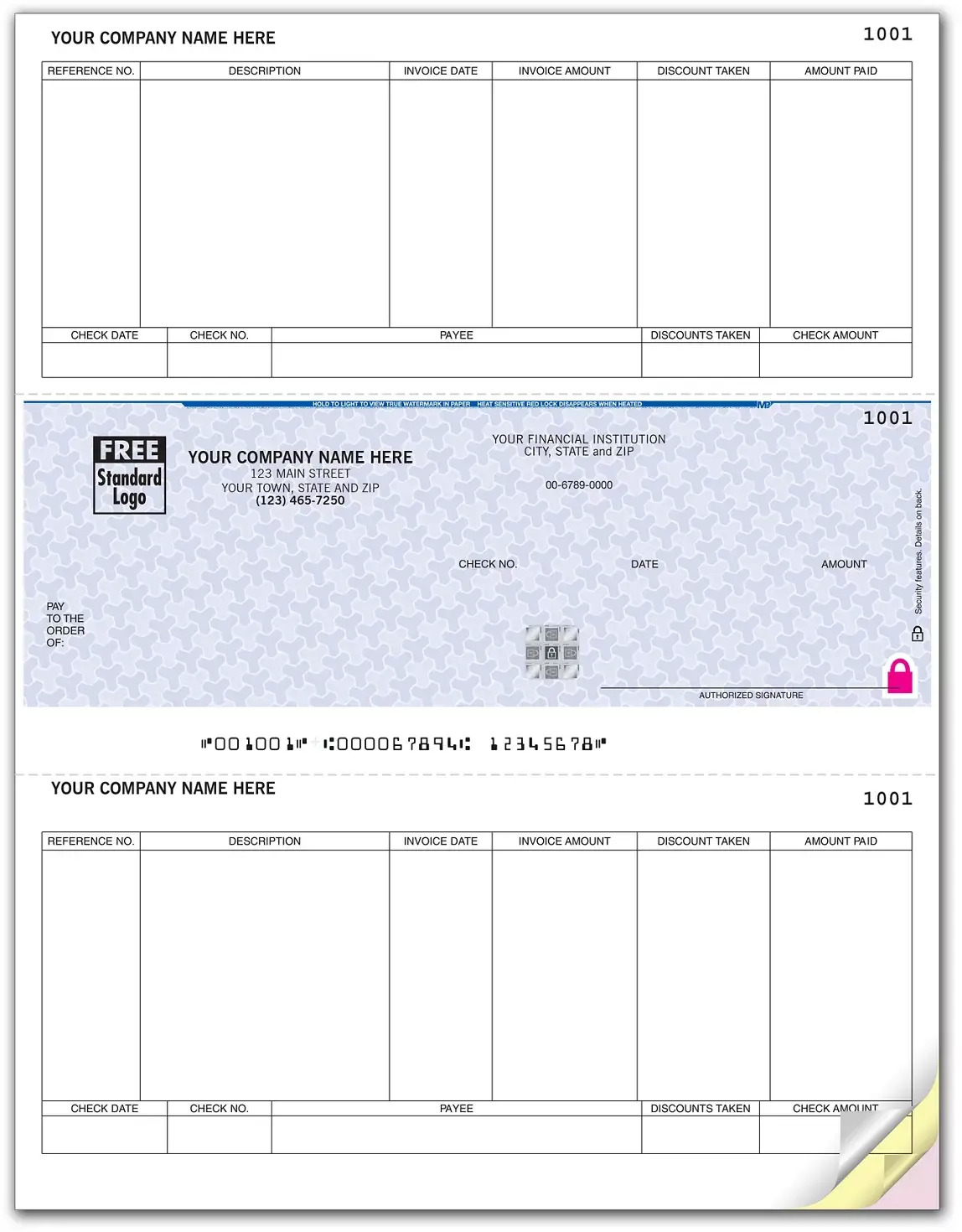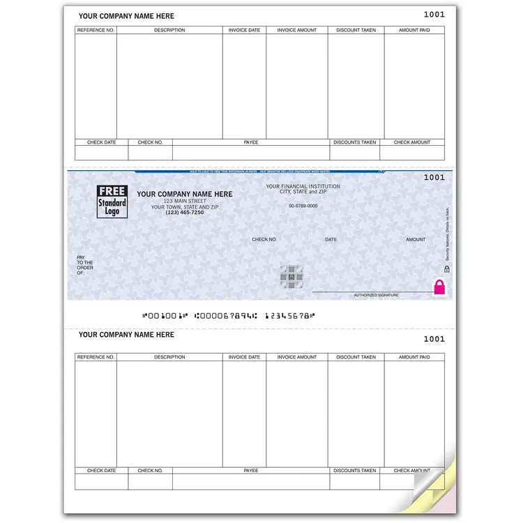 These convenient Accounts Payable Laser Checks are perfect for paying multiple invoices at once. They come complete with 2 detachable lined stubs equipped with headers and columns to keep your information organized. These Laser Checks are compatible with your Sage software and are versatile enough to function with both inkjet and laser printers. Choose your check background and include your own logo for extra personalization.