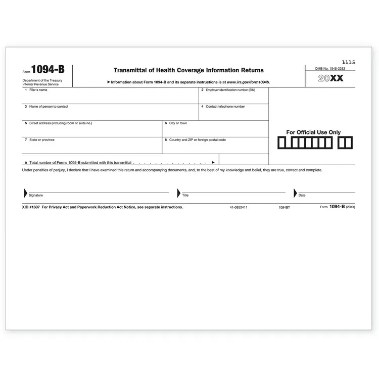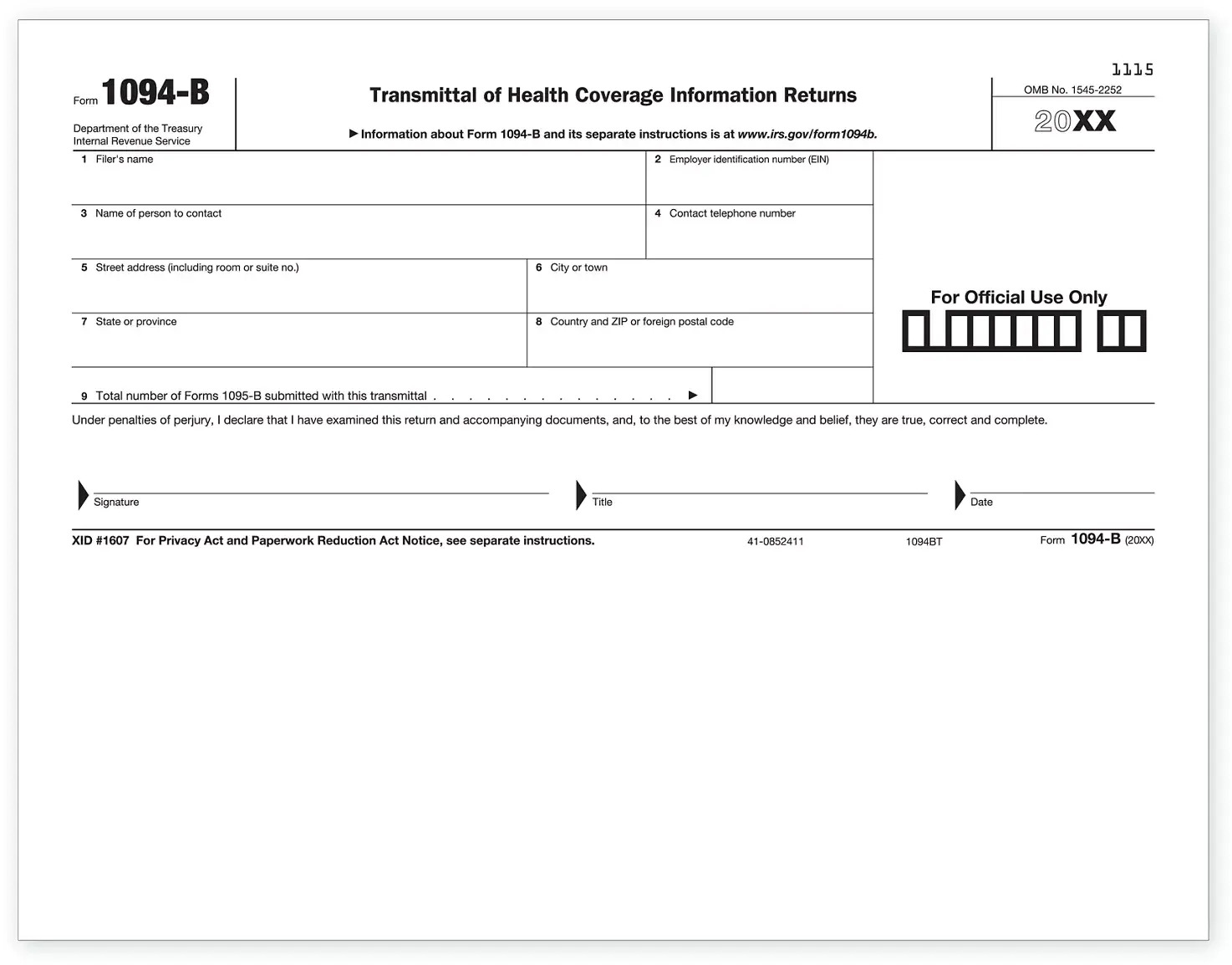 This form is used to fulfil reporting requirements under the Affordable Care Act (ACA). This Summary Transmittal is required for submitting 1095B forms to the IRS.