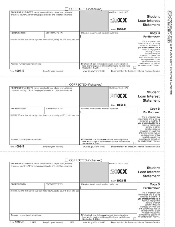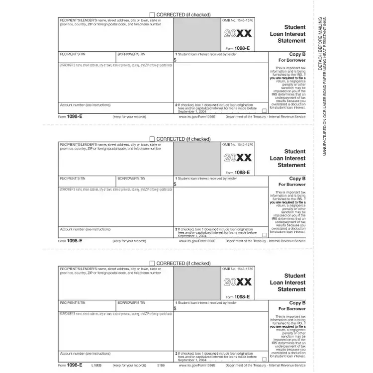 Laser 1098-E Tax Forms - Borrower Copy B (TF5186)