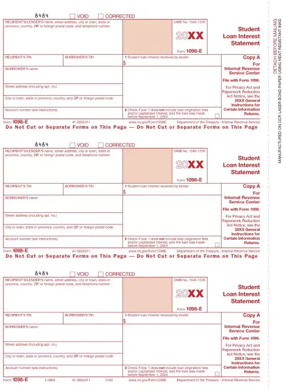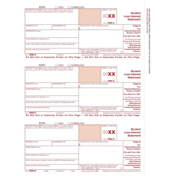 Laser 1098-E Tax Forms - Federal Copy A (TF5185)
