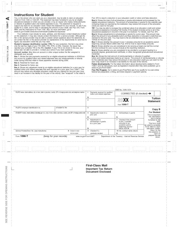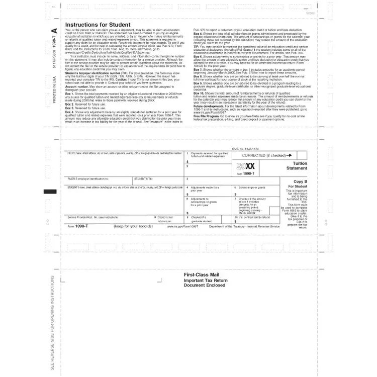 Laser 1098-T Tax Forms - Student Copy B, Pressure Seal (TF5117)
