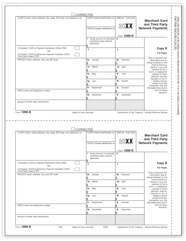 Laser 1099-K Tax Form- Copy B (TF5326)
