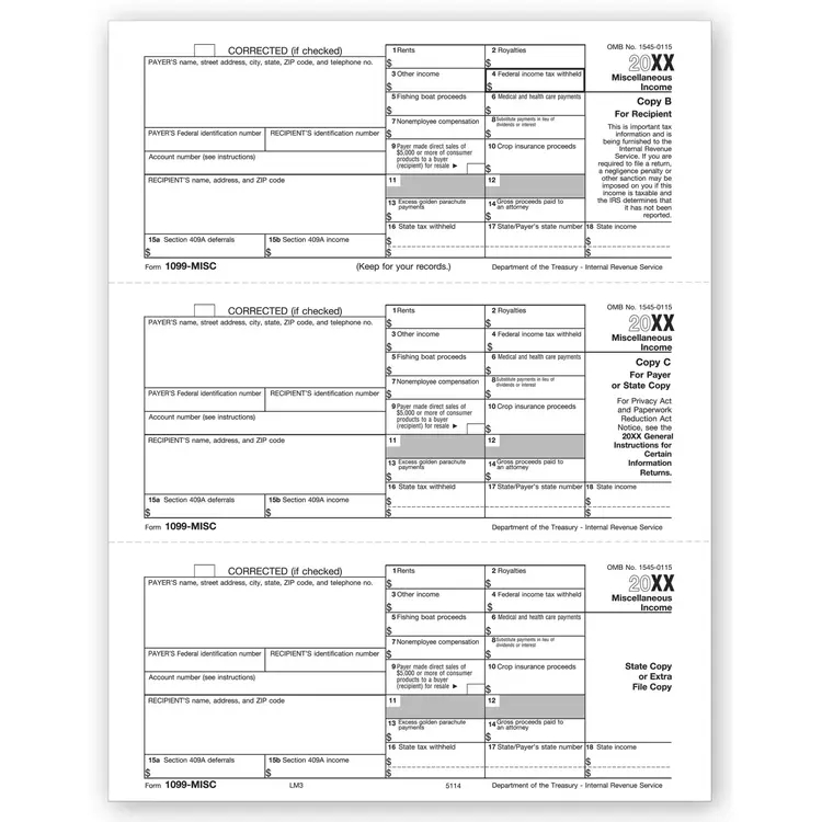 Laser Bulk 1099-MISC Tax Forms, Copy B (TF5114B)