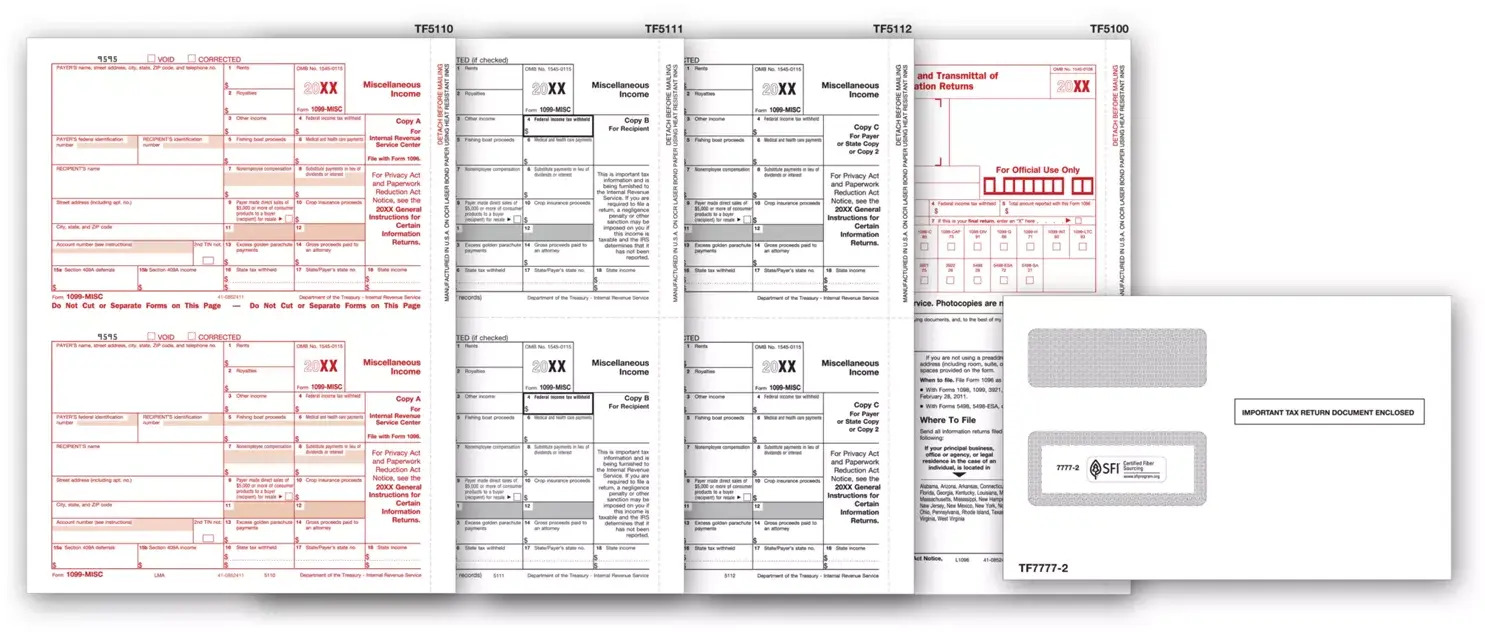 Laser 1099 MISC Tax Forms & Envelopes, 5-Part