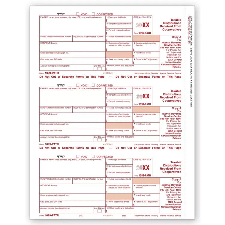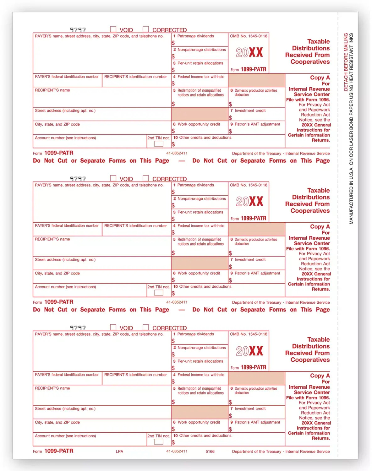 Laser 1099-PATR Tax Forms - Federal Copy A (TF5166)