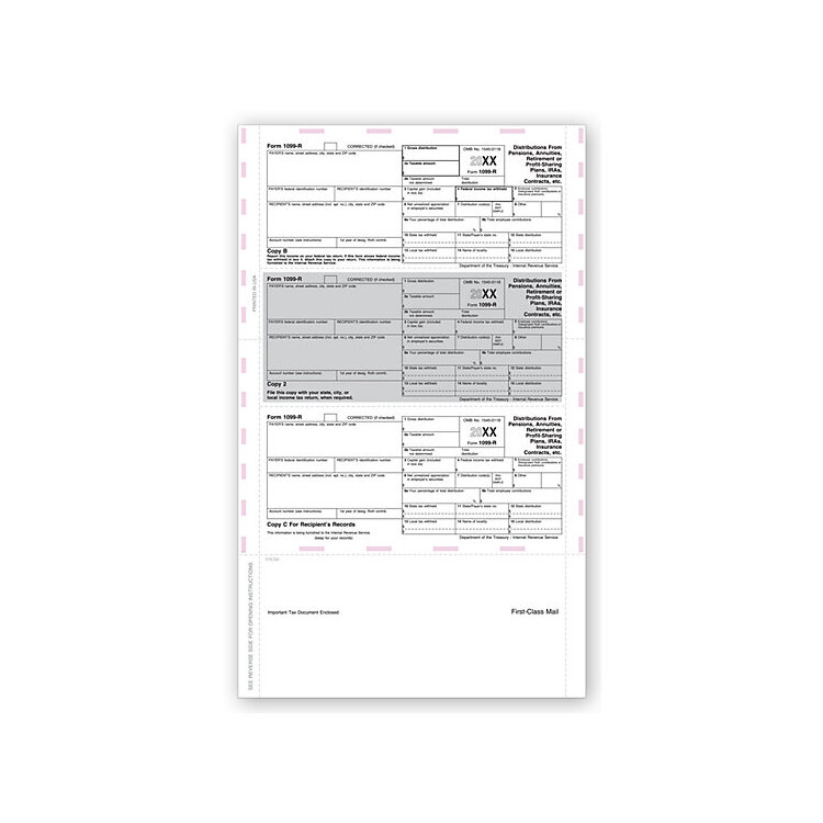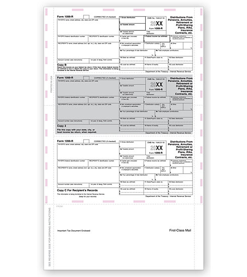 Laser 1099-R Tax Forms - Horizontal, Pressure Seal, 3-Up (TF5503)