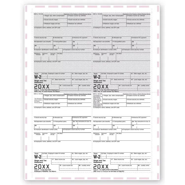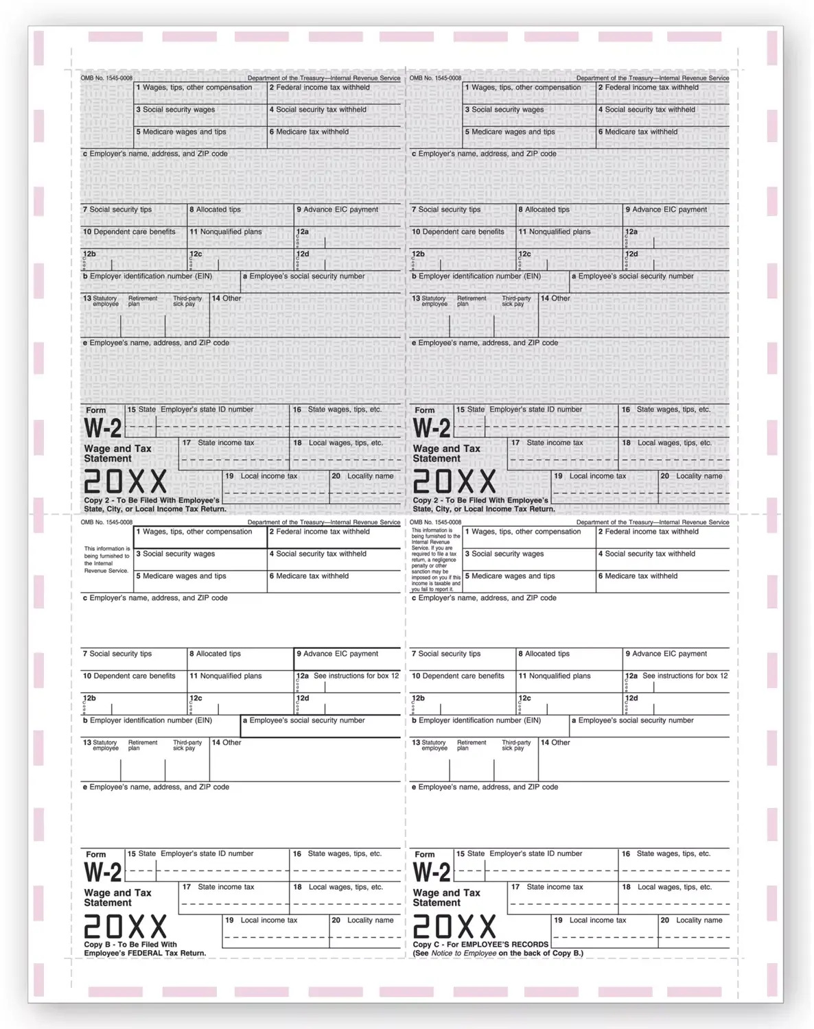 4-Up Laser W-2 Tax Forms - Pressure Seal (TF5220)