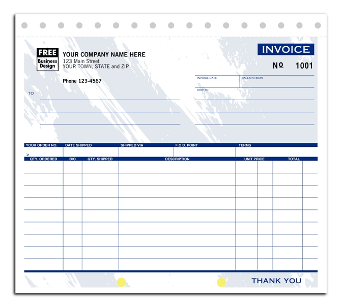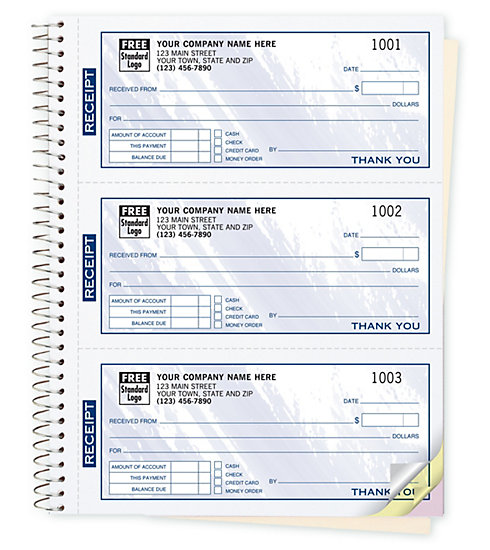 Since these products are crash-printed, meaning that the print is done by applying pressure, a triplicate business form printed in blue ink will be blue on the top copy but black on the second and third copy. The copies will look like they were stamped with the information. Products with your own design, on the contrary, will be blue on all 3 copies.